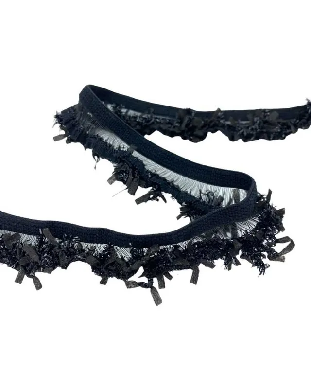 50 Cm Passamaneria Elastica Nera Frangetta Lurex Alta 2 Cm