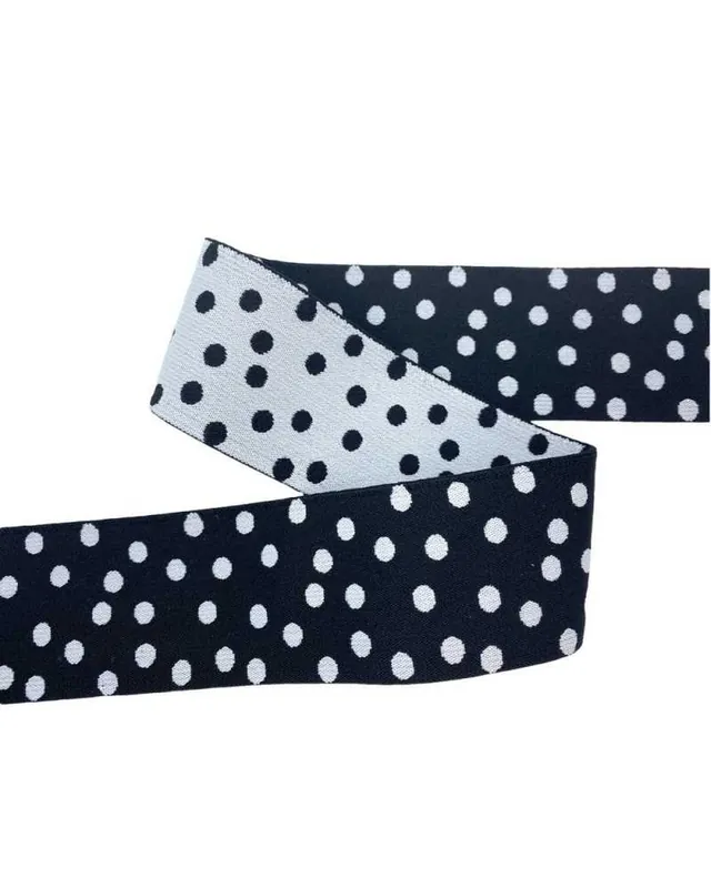 50 Cm Passamaneria Elastico Moda Nero Pois Bianco Molla Doubleface Alto 5 Cm Pagamento Sicuro