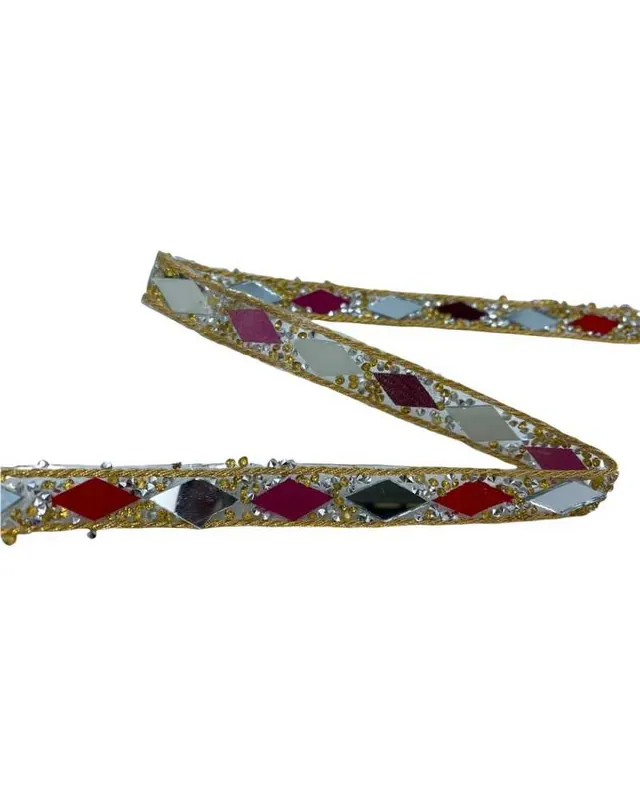 Questa passamaneria brillante e scenografica è perfetta per personalizzare capi e accessori con un tocco glamour. I strass e specchietti incastonati su decorato con filo lurex oro creano un effetto luminoso e sofisticato, ideale per moda, streetwear e decorazioni handmade.