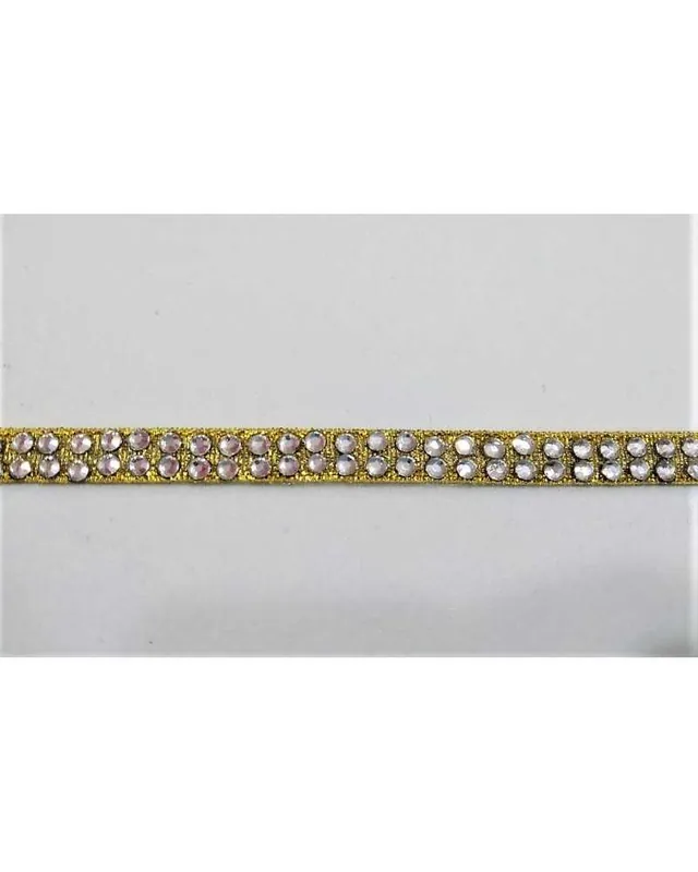 50 cm Passamaneria termoadesiva strass argento base oro due file alta 7 mm