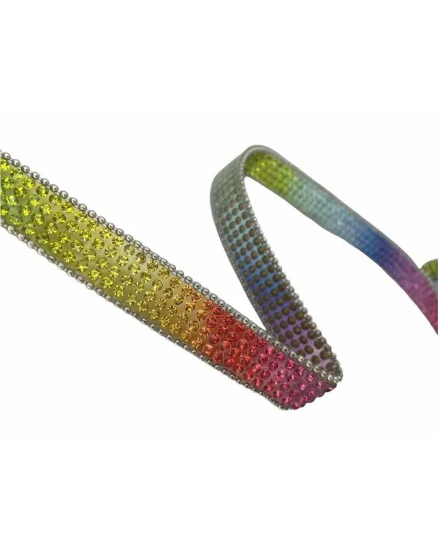 50 Cm Passamaneria Termoadesiva Strass Arcobaleno e Perline Alta 1 Cm