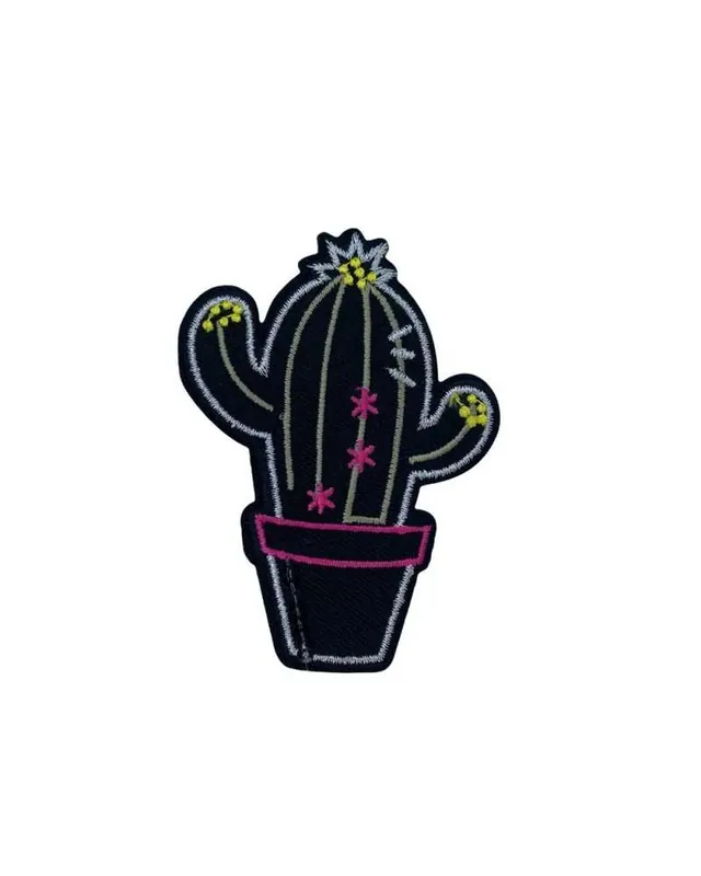 Dai un tocco trendy e brillante ai tuoi capi con questa originale applicazione adesiva a forma di cactus, arricchita da paillettes nere e filati Lurex argento, fuxia, giallo e verde salvia. Un ricamo firmato Marbet, perfetto per personalizzare giacche, felpe, tute, borse, jeans e molto altro.