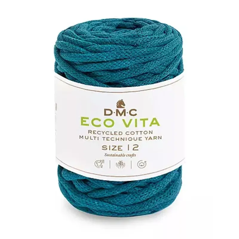A Buon Prezzo Bobine de cordon DMC 4mm coton recyclé pour macramé – Eco Vita 12 Bleu canard x55m
