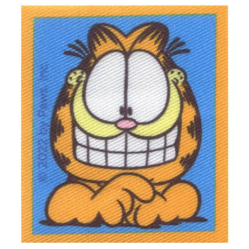 La Patch Termoadesiva Garfield Sorridente è un applicazione divertente e piena di carattere che raffigura il gatto più famoso dei fumetti con un sorriso esagerato e indimenticabile. Il suo design rettangolare incorniciato in arancione mette in risalto l’espressione birichina e umoristica di Garfield, ideale per aggiungere un tocco originale e pieno di personalità ai tuoi vestiti o accessori.