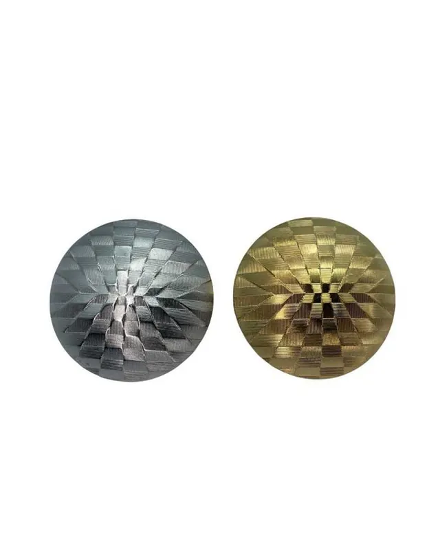 Descrizione prodotto: Bottone tondo bombato con superficie lineata a rilievo, realizzato in miscela di poliestere e nylon per garantire resistenza e leggerezza. Finitura opaca con motivo geometrico a scacchiera, ideale per giacche, cappotti, abbigliamento tecnico e sartoriale. Dotato di gambo posteriore per cucitura invisibile.