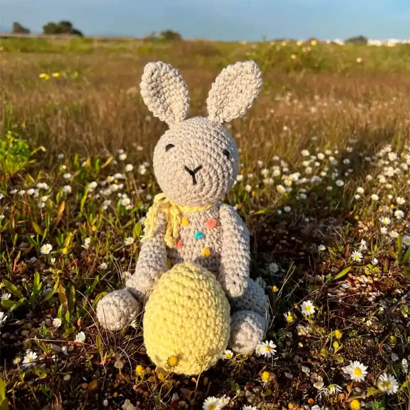 Questo modello amigurumi include un tocco di ricamo, in particolare il nodo francese, che aggiunge un ulteriore livello di dettaglio e carattere al coniglietto. Il suo livello di difficoltà è intermedio, quindi è consigliabile avere una conoscenza preliminare dell’uncinetto.