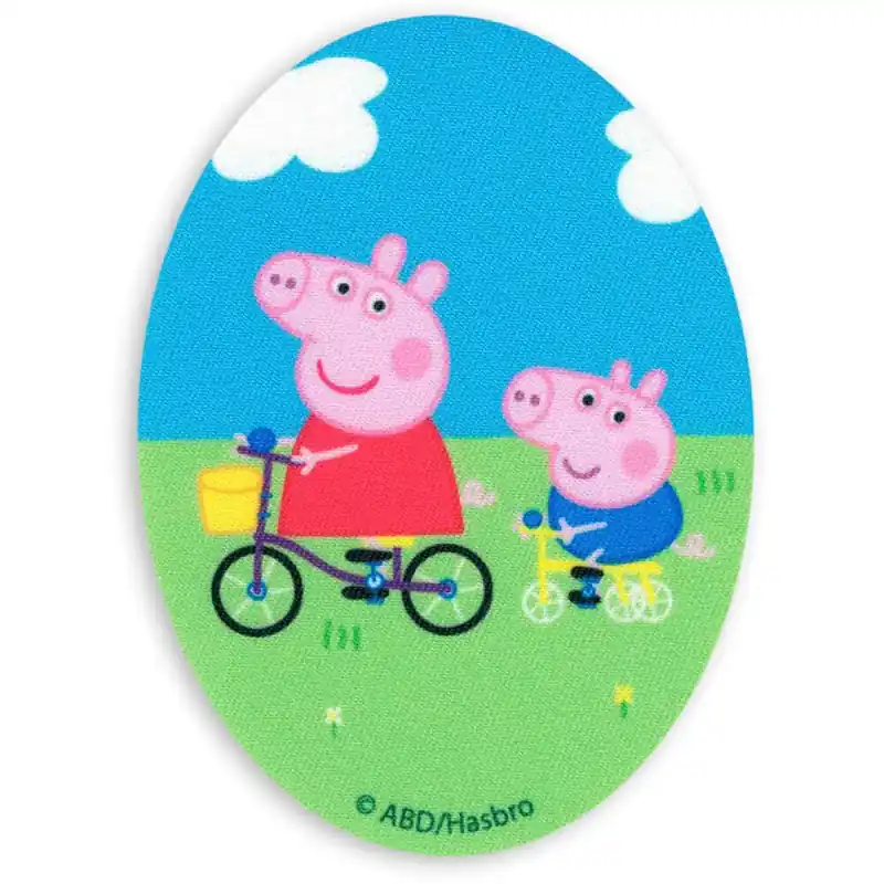 Acquista Ora Toppa Termoadesiva Ovale di Peppa Pig e George in Bicicletta