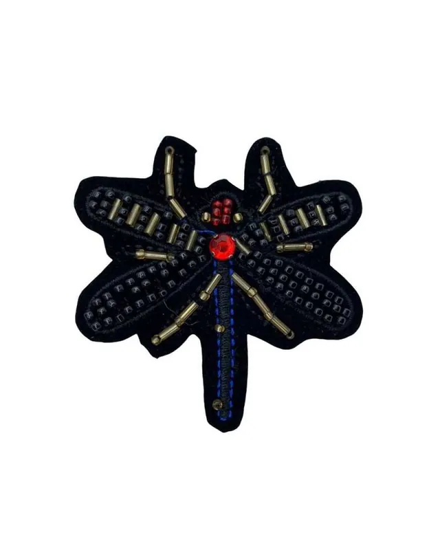 Applicazione Cucibile Farfalla Nero Perline Strass Rosso 7×6 Cm