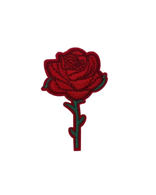 Applicazione Termoadesiva Patch Ricamo Filo Lucido Rosa Rosso 7,5×5 Cm