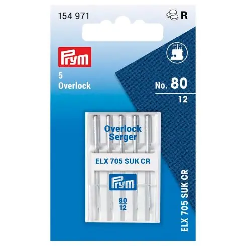 Astuccio in plastica su carta di 5 aghi per macchina da cucire “Overlock” e “Coverlock” n°80 ELX 705 SUK CR. Ideale per rifinire tessuti in jersey ma anche per maglieria e calzetteria grazie alla sua punta media. Gli aghi per macchine da cucire “overlock” sono progettati appositamente per i requisiti delle macchine “overlock” come la velocità di sollevamento.