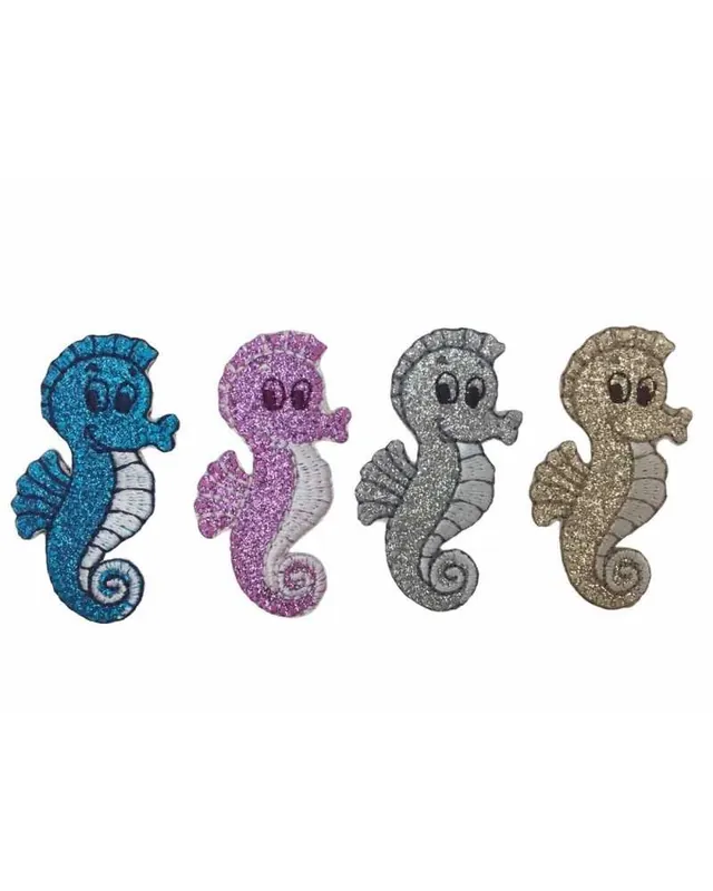 Applicazione Cavalluccio Marino Patch Termoadesiva Ricamata Glitter 50×25 Mm Affare