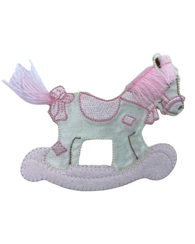 Applicazione FS Termoadesiva Cavalluccio Dondolo Rosa Velluto Raso Bianco Latte 10×8 Cm