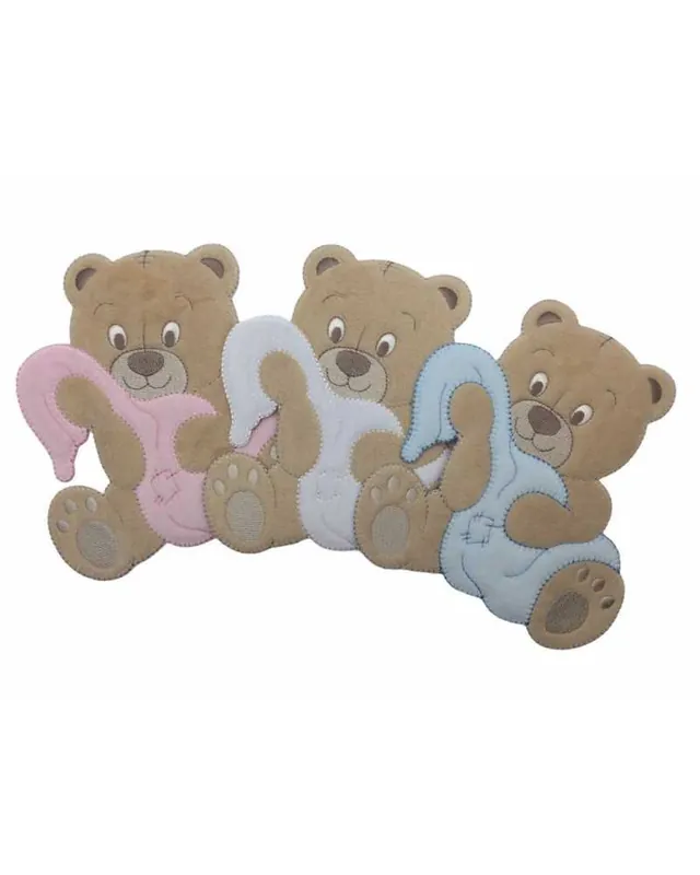 Patch termoadesiva in velluto con ricamo orso baby e copertina. Perfetta per decorare copertine grembiuli lenzuolini e accessori per neonati. Facile da applicare con il ferro da stiro.