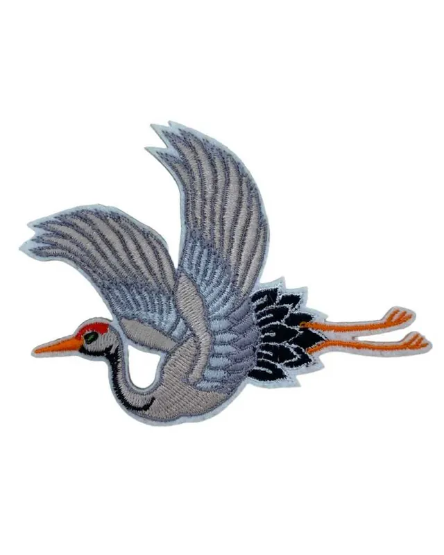 Applicazione Termoadesiva Adesiva Patch Ricamo Airone Uccello Volatile 10×9 Cm AutoTermoAdesivo, DX, GRU Offerta Lampo