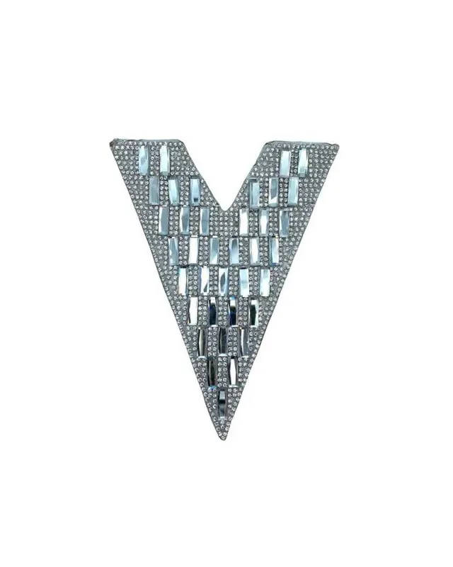 Applicazione Termoadesiva Argento Patch Toppa Gioiello Strass Pietra Rettagolari 15×12 Cm lettera V Vendita Finale