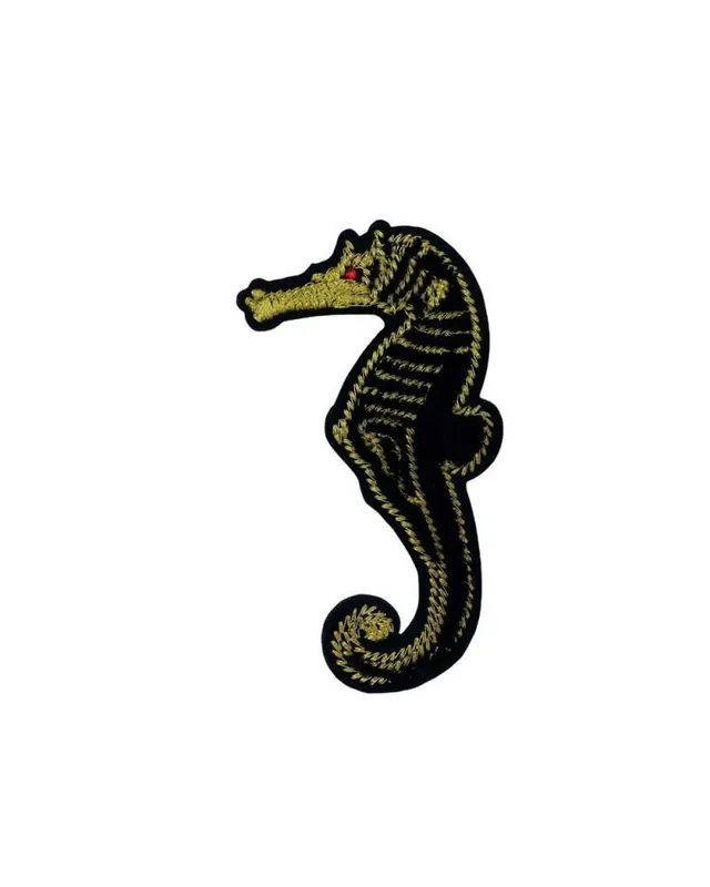 Applicazione Termoadesiva Patch Cavalluccio Marino Ricamo Filo Lurex Oro Velluto 10×5 Cm Occasione