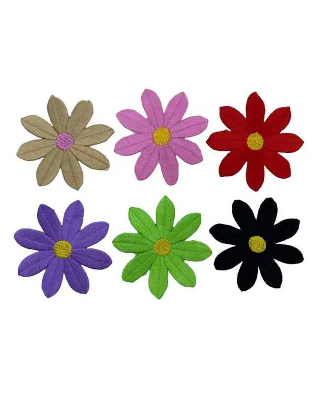 Personalizza i tuoi capi con la patch termoadesiva ricamata a forma di margherita, 7 cm, realizzata in 70% poliestere e 30% rayon. Facile da applicare con il ferro da stiro, ideale per giacche, borse, abiti e accessori. Prezzo per pezzo.