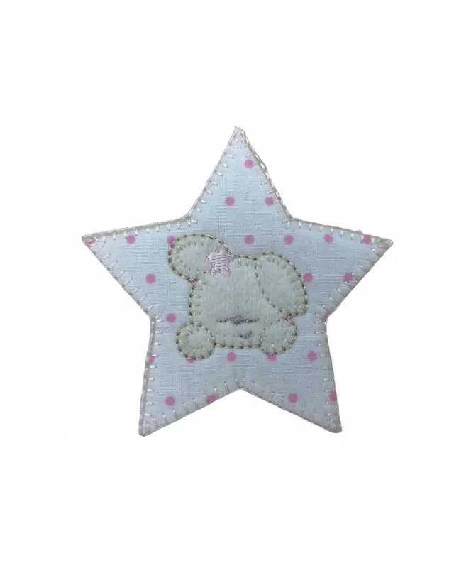 Applicazione Termoadesiva Patch Ricamo Stella Baby Cane Tessuto Pois Base Bianco 7 Cm Promo Stagionale