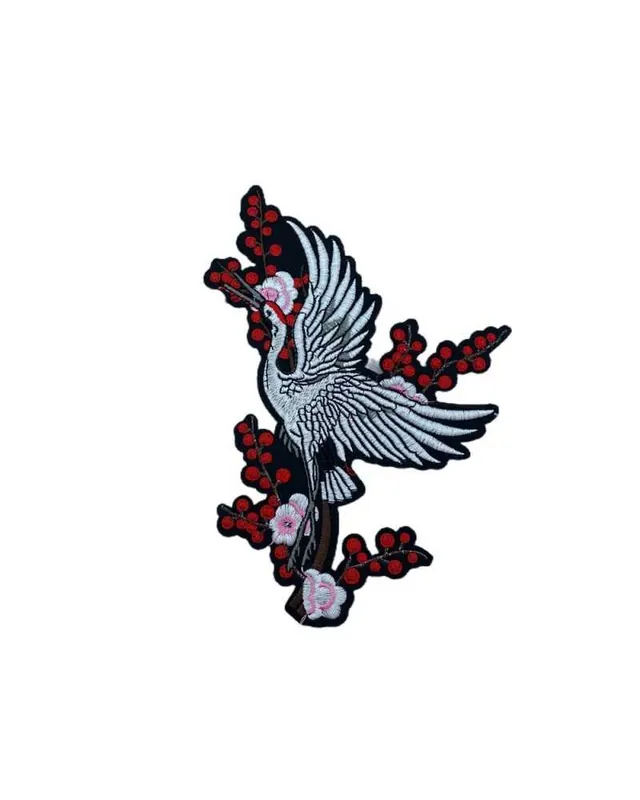 Applicazione Termoadesiva Patch Ricamo Uccello Rami Fiori 20×12 Cm Spedizione Gratuita