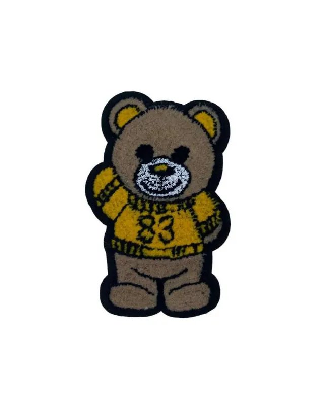 Applicazione Termoadesiva Patch Velluto Orsetto Orso Beige Maglia 83 Gialla Cm 6,5×4