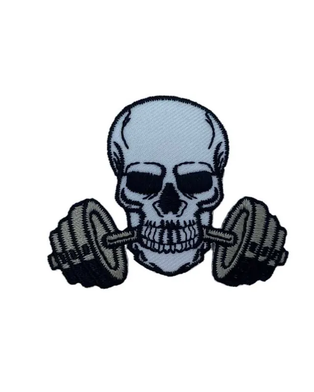 Applicazione teschio con bilacere termoadesiva patch toppa ricamata nei colori bianco e grigio 60×50 mm