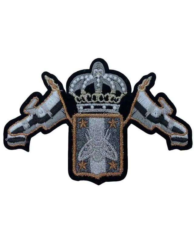 Applicazione Toppa Patch Termoadesiva Ricamo Stemma Corona Bandiere Filo Metallico 12×8 Cm Saldi