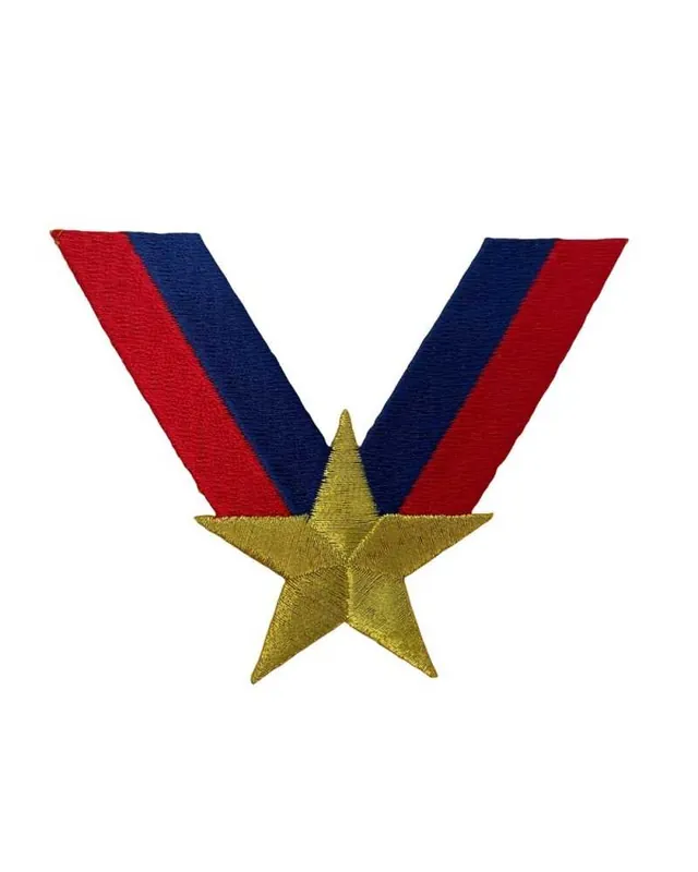 Applicazione Toppa Patch Termoadesiva Stella Ricamo Oro Lurex Riga Rosso Blu 7×9 Cm