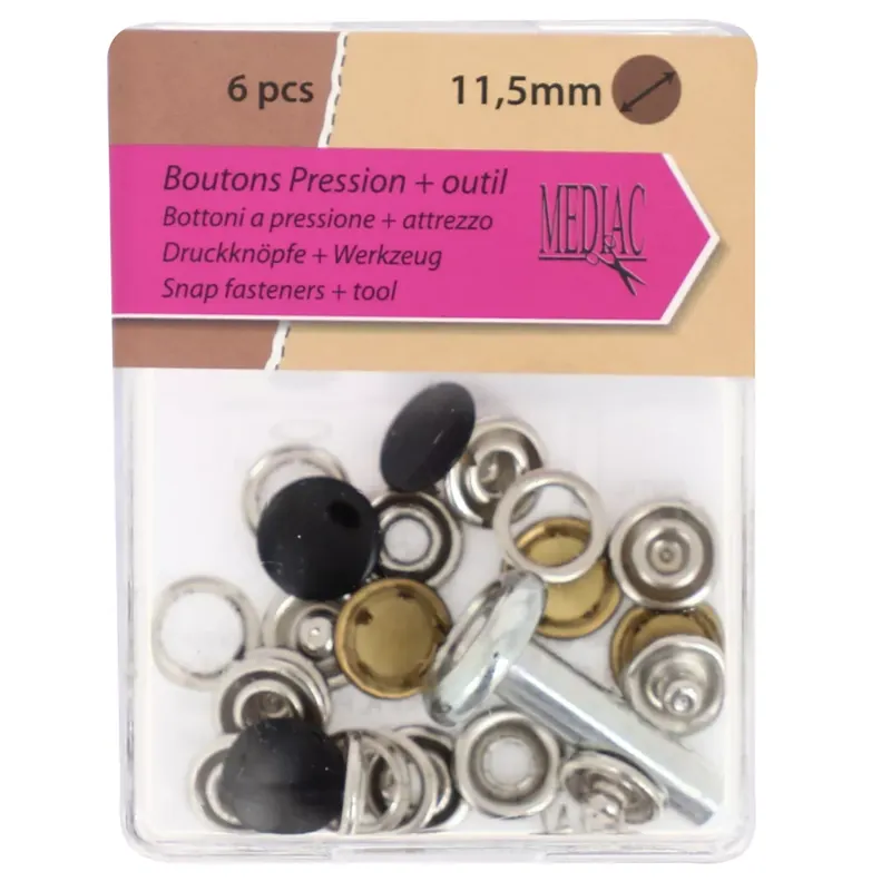 Bestseller Boutons pressions et outil de pose 11.5 mm – Noir x6