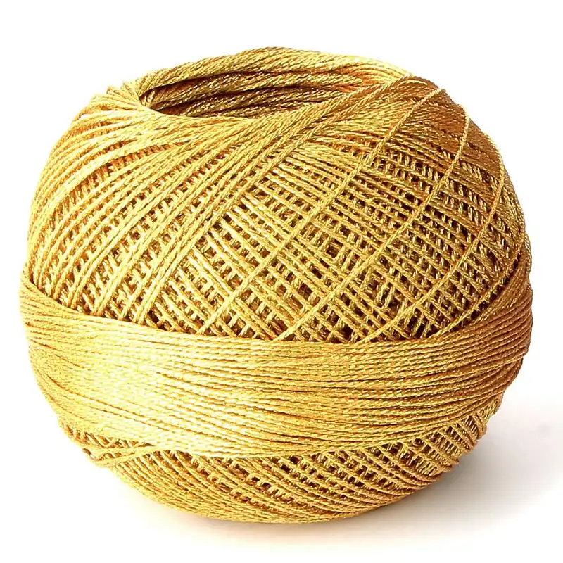 Ce fil Liz Metallic 6 brins comparable à la taille 20 de la gamme Lizbeth, couleur Doré (n°310) est en polyester recouvert d’un fil métallisé en polyéthylène téréphtalate (PET).