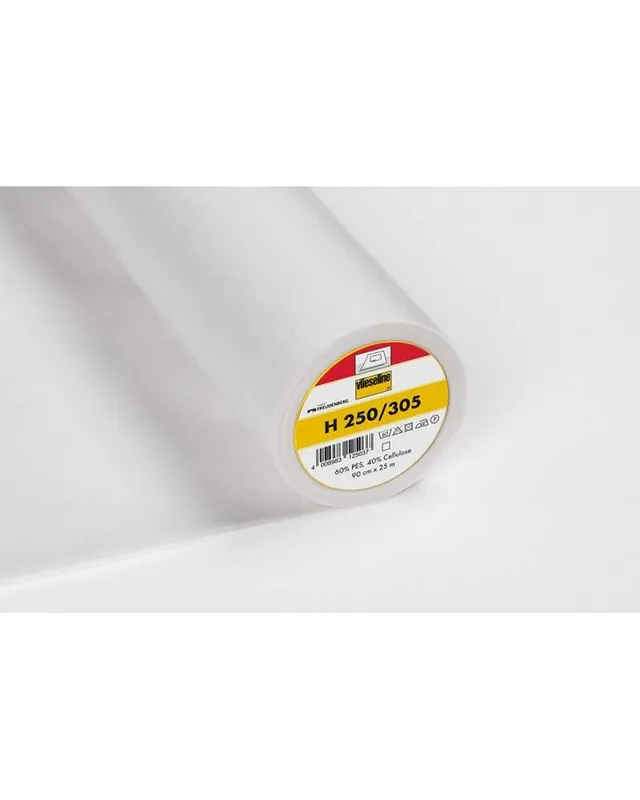 Interfodera termoadesiva H 250, stabile e mediamente pesante, perfetta per cinture, girovita sagomati e lavori di bricolage. Lavabile fino a 60°C.