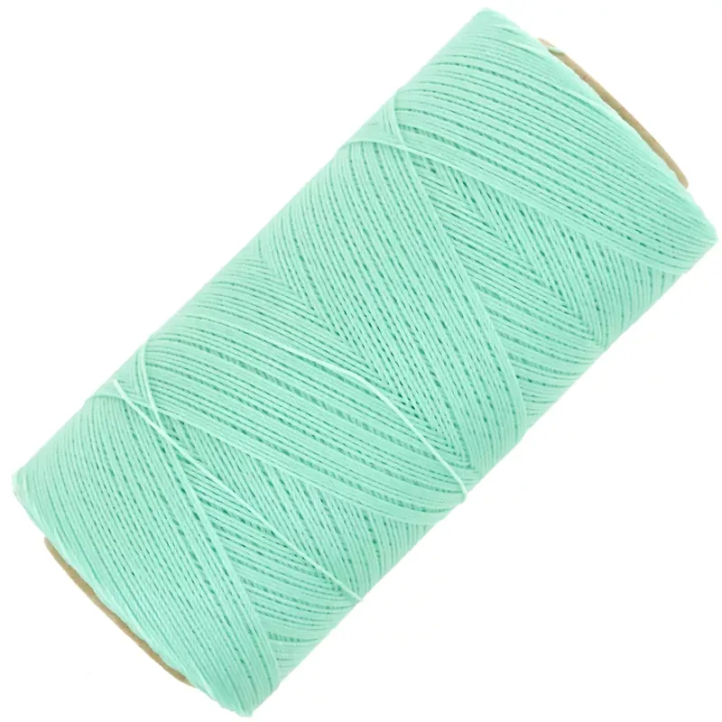 Cette bobine de fil ciré Linhasita, d’une douce teinte Menthe Glacée, vous invite à créer des bijoux et accessoires en micro macramé.