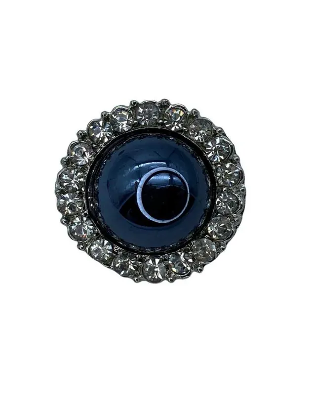 Bottone Gioiello Bombato Corona Strass Alluminio Argento Gambo Perla Blu 18 Mm