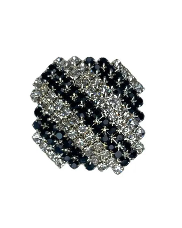 Bottone Goiello Bombato Strass Argento Nero – Ottagonale 3 cm
