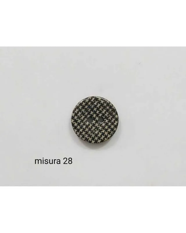 Bottone in Cocco Pied de Poul Stampato Nero e Base Beige Diametro 18 Mm, Linea 28