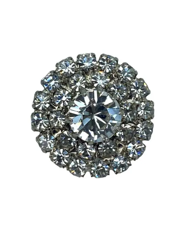 Elegante bottone tondo argento con strass centrale, dal design gioiello, e gambo in metallo, ideale per aggiungere un tocco di classe e lusso a capi di abbigliamento, accessori e progetti creativi. Perfetto per giacche, camicie, borse e altre creazioni sartoriali.