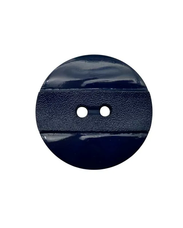 Descrizione prodotto: Bottone tondo bombato in plastica blu scuro, con 2 fori centrali per cucitura. Design moderno con fascia centrale opaca e bordi lucidi, ideale per giacche, pantaloni, abbigliamento casual e sartoria artigianale. Diametro 28 mm, linea 44, con superficie riflettente e dettagli eleganti.