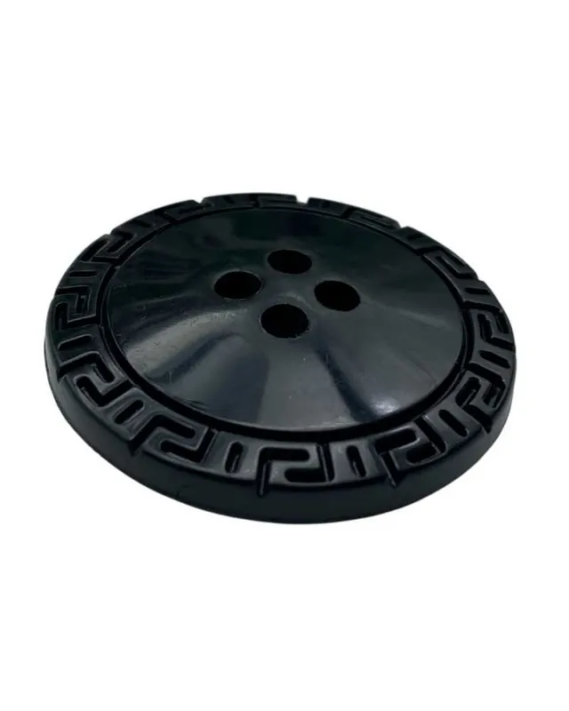 ? Bottone Tondo Nero Lineato 48 | Ø 3 cm | 4 Fori con Greca Un bottone dal design classico e deciso, perfetto per capi sartoriali con carattere ✨