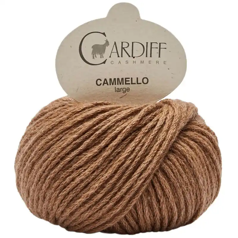 Cardiff Cashmere Cammello Large è un filato eccezionale realizzato con 100% fibra di cammello, proveniente dal morbido vello inferiore del cammello bactriano. Questa fibra naturale è nota per il suo calore superiore, la capacità di isolamento, la leggerezza e la traspirabilità, rendendola un materiale ideale per capi invernali di vero lusso.