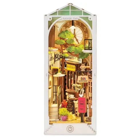 Aggiungete un tocco luminoso e decorativo al vostro angolo lettura o alla vostra biblioteca con questo grazioso fermalibri puzzle 3D. Riproducete una scena del centro città con la via dello shopping: la libreria, il caffè, gli animali sulla strada… e stupite gli amici con il vostro talento creativo!