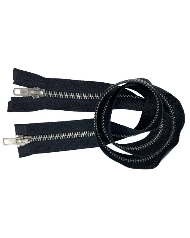 Cerniera Zip Lampo Chiusura Metallo Ottone Catena 5 Argento 2 Cursori Divisibile Cm 80