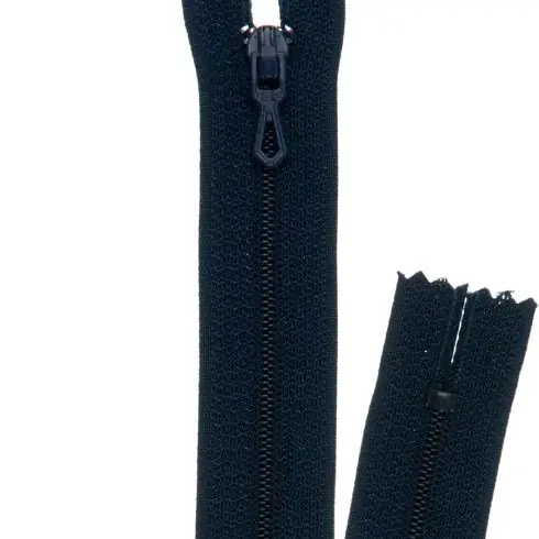 Cerniera Prestil O in blu navy. Chiusura in nylon, sottile 4 mm, ideale per abbigliamento leggero e layette.