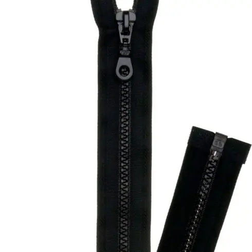 Cerniera Prestilon 6 separabile di colore nero di 45 cm. Catena sintetica stampata di alta qualità da 6 mm per giacche, tende o altri accessori da campeggio.