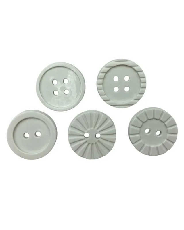 Caratteristiche: ✔ Diametro: 2,6 cm ✔ Linea: 40 ✔ Materiale: Plastica bianca resistente ✔ Finitura: Opaca o leggermente lucida, con vari dettagli ✔ Tipologie: – 4 fori centrali lisci – 4 fori con bordo rigato – 2 fori lisci – 2 fori con motivo a raggiera – 2 fori con bordo segmentato