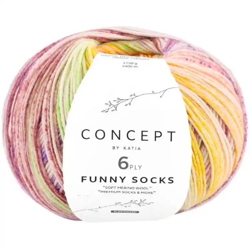 Katia Funny Socks della collezione Concept by Katia vi permette di dare un tocco divertente ai vostri piedi. Questo filato è perfetto per realizzare calzini. È composto da una miscela di merino superwash e poliammide, che garantisce morbidezza, resistenza e facilità di manutenzione.