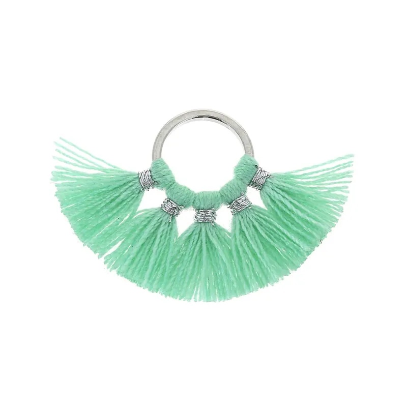 Compra Adesso Petit pendentif éventail pompons imitation coton 20×29 mm Mint/argentéx1