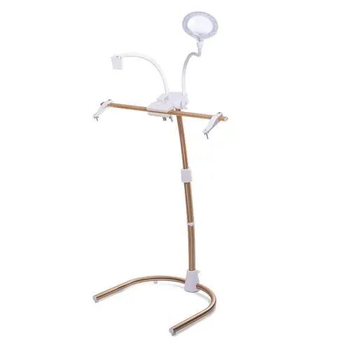 – Due accessori per il supporto in metallo (DL.E25088- Stitch Smart 2). Installando la lente d’ingrandimento e il morsetto per diagrammi sul supporto del telaio, avrete un set completo per lavorare comodamente. Non resta che fissare il telaio di vostra scelta al supporto metallico.