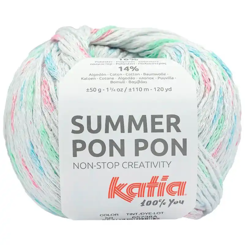 Aggiungi divertimento ai tuoi progetti estivi ai ferri o all’uncinetto con Katia Summer Pon Pon. Dai top giocosi agli accessori affascinanti, questo filato ti dà l’opportunità di tessere con creatività e stile. Esplora la magia del colore e del divertimento con Katia Summer Pon Pon e dai vita ai tuoi progetti estivi!