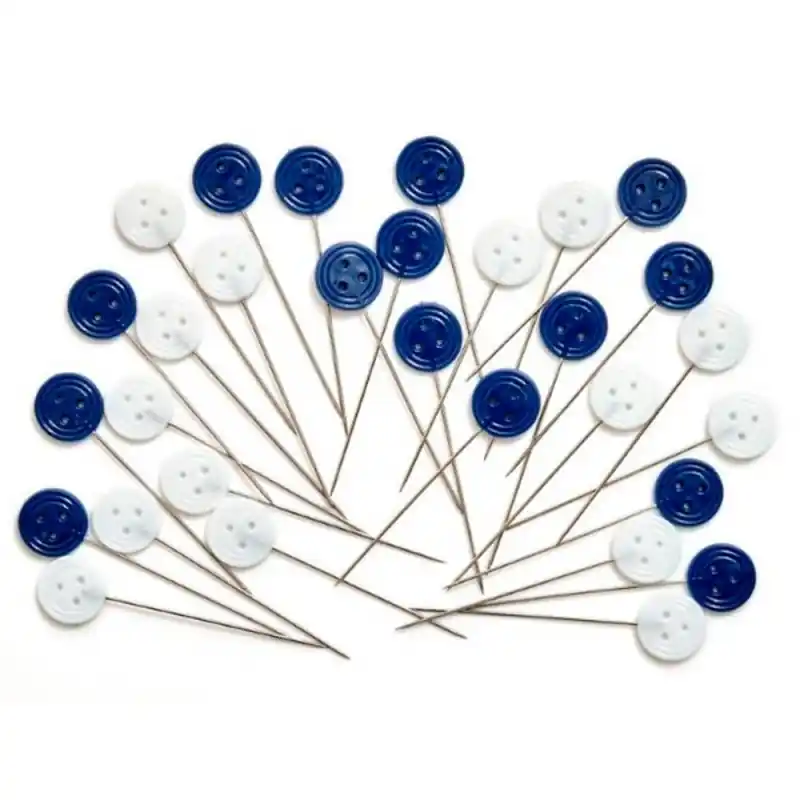 La loro originale testa piatta a forma di bottone, disponibile nei colori blu e bianco, non solo aggiunge un tocco decorativo, ma è anche resistente al calore fino a 170 °C, permettendo di stirare direttamente sugli spilli senza lasciare segni.