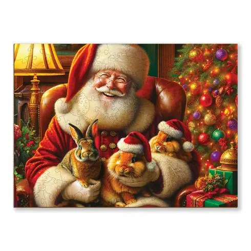 Compra Oggi Stesso puzzle in legno – Babbo Natale e i suoi conigli – 150 pezzi – Wooden City