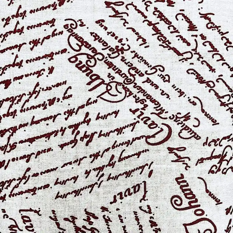 Compra Oggi Stesso Tessuto 100% Lino, Beige con Scritte Rosse